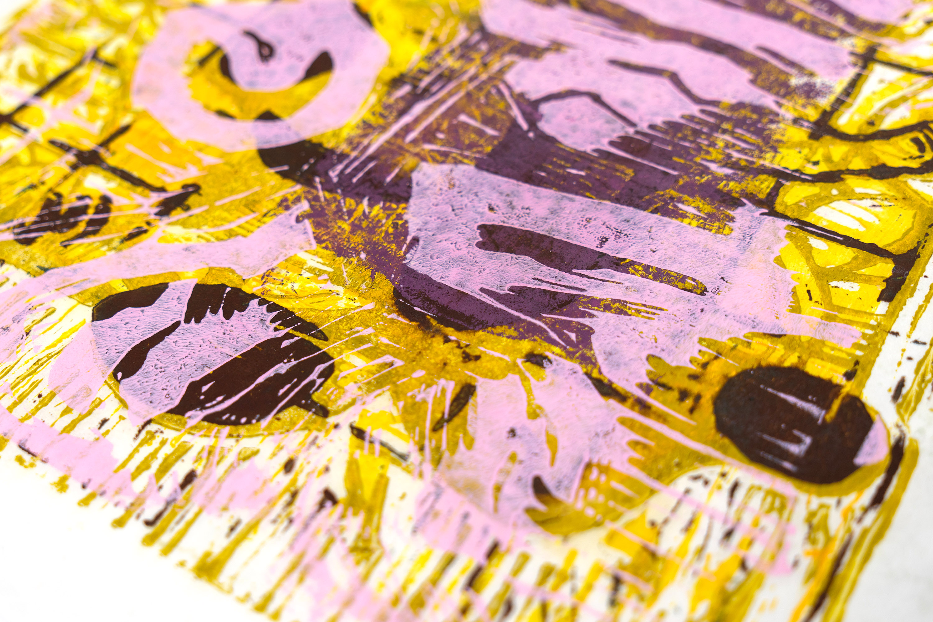 Series of 50 unique linocut prints